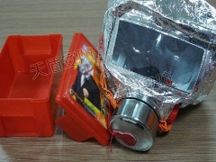 配备于宾馆,饭店、办公楼、商场、学校、幼儿园、医院、影剧院、餐厅、公寓楼、住宅楼等场所,为突发火灾时的逃生装备。头罩是由阻燃隔热材料制成,眼窗为弧成结构视野更广阔,口鼻罩曲面与颜面部吻合严密,漏气系数小。头罩上使用了特殊的反光材料,增强了火场的识别能力。滤毒罐可有效地防护由于各种材料燃烧而产生的有毒害气体和烟气,特别对CO(一氧化碳)和HCN(氰氢酸)及烟氯有很好的防护功能。