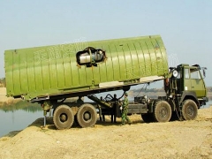 应急动力舟桥是一种每个浮体单元自带动力、架设快速、机动灵活、集浮桥、渡运于一体的新型舟桥,用于在紧急或非正常状态时,快速架设通道,保障70吨级重型装备和车辆迅速克服江河、湖泊等障碍。