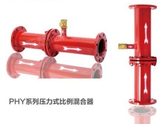 PHY系列压力式比例混合器是将消防谁和泡沫原液按一定比例(3:97或6:94)进行混合,形成泡沫混合液,供给泡沫喷射或产品装置使用。