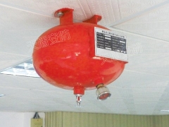 悬挂式气体灭火设备/装置根据启动方式的不同可分为定温式、电爆式和电磁阀式三种。定温式悬挂气体灭炎装置主要依靠阀门上的定温玻璃球在火灾时受热膨胀使其破裂而将阀门打开喷放灭火剂;电爆式和电磁阀式悬挂气体灭火装置一般与火灾探测器、手动启动按钮、火灾报警控制器等报警系统设备配套使用;当防护区发生火灾时,火灾探测器动作,火灾报警控制器确认火警并输出启动信号,使灭火装置启动施放灭火剂,或由人员确认火警后按下手动启动按钮,使电爆头或电磁阀动作从而将阀门打开喷放灭火剂实施灭火。